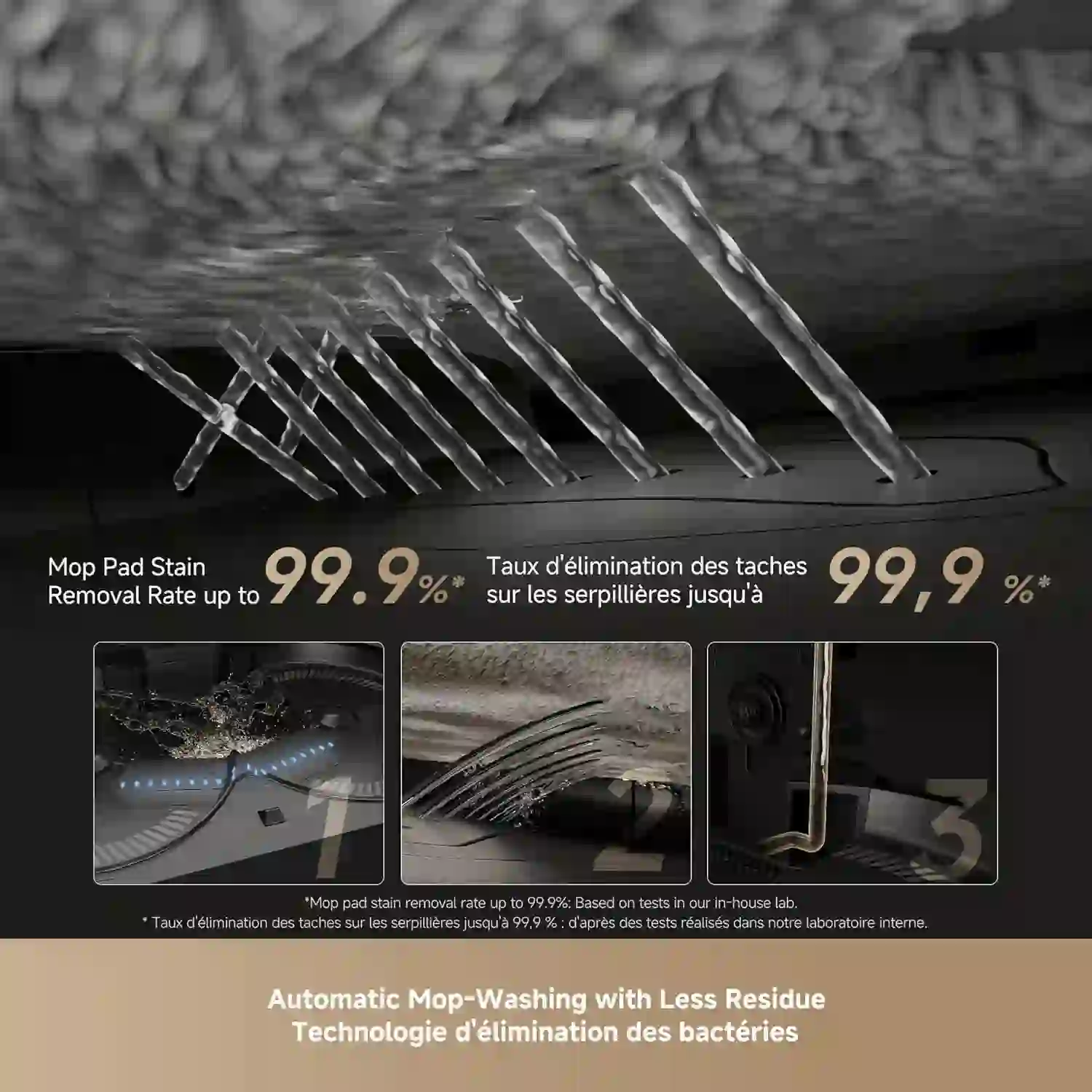 فناوری HyperStream™ DuoBrush در برس اصلی، از گره‌خوردن موها جلوگیری می‌کند و ترکیب آن با طراحی SideReach™ در لبه‌ها و کناره‌ها، نظافتی یکنواخت و کامل ایجاد می‌کند. سیستم تی‌کشی با شست‌وشوی پدها در دمای تا ۸۰ درجه سانتی‌گراد، بوی نامطبوع، چربی‌ها و باکتری‌ها را از بین می‌برد و با خشک‌کردن خودکار، جلوی ایجاد نم و قارچ را می‌گیرد.